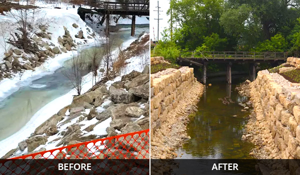 One of the first Great Lakes Restoration Initiative Shoreline Cities Green Infrastructure projects to be funded was the Waukegan River Bank Stabilization. Semper Fi Land Service completed this project in the summer of 2015, providing a great example of what the Great Lakes Restoration Initiative program strives to fund.